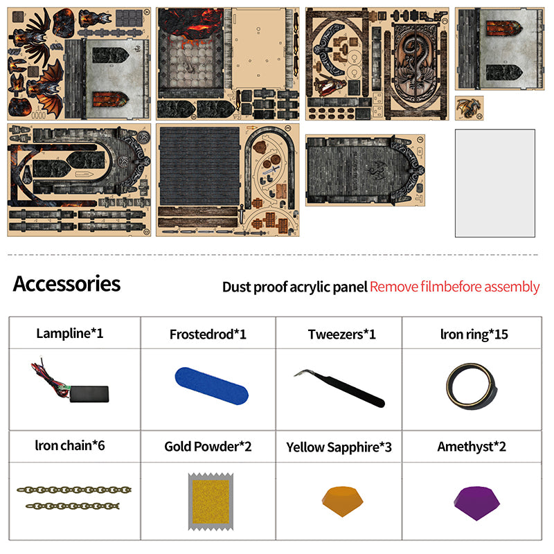 Equipped with a built-in LED lighting system, this kit casts a cozy, mysterious glow that transforms your shelf into a cinematic fantasy scene at night. (Powered by 2 x AAA batteries). -