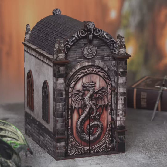 Swing wide the intricately engraved stone gates to reveal a sprawling treasure hoard. The functional double-door design adds a layer of mystery and ritual to your bookshelf. -